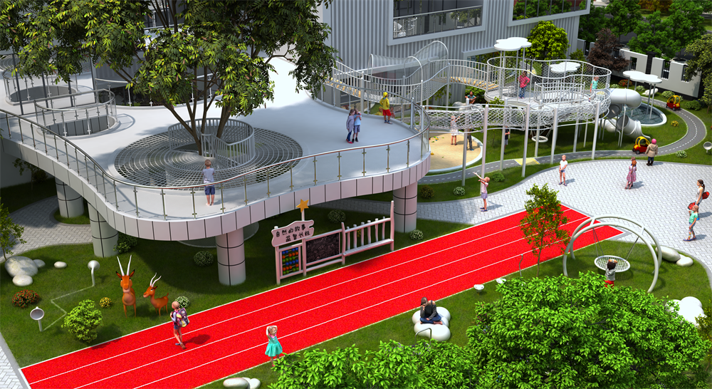 設(shè)計(jì)理念: 烏托邦意味著理想的國(guó)家,我們想把最美好的地方,最理想的兒童空間留個(gè)童年,在這里可以釋放天性,在這里可以無(wú)限發(fā)揮創(chuàng)造,烏托邦式的兒童空間也是美好至極。 設(shè)計(jì)亮點(diǎn): 設(shè)施由連廊相連的四個(gè)樹屋陽(yáng)光房,營(yíng)造幼 -