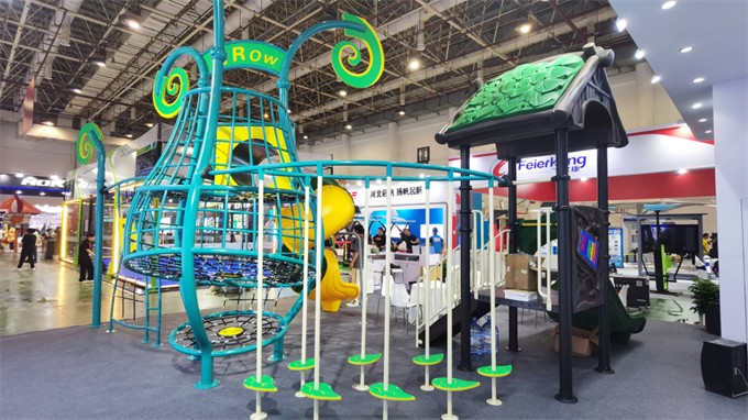本次體博會吸引了1500余家參展商、10余萬觀眾參與其中。在這場盛大的體育產(chǎn)業(yè)展會中,飛友以兒童友好型體育公園設計規(guī)劃為切入點,向來往顧客展示了兒童游樂裝備在文旅公園項目中的運用案例。